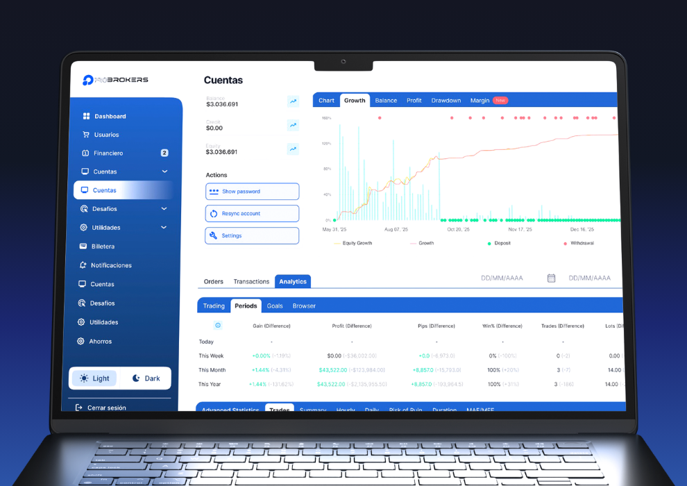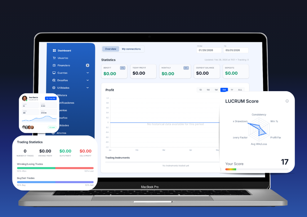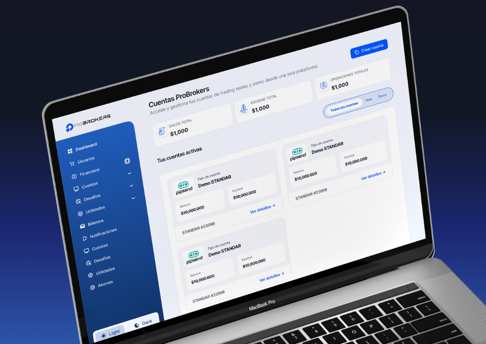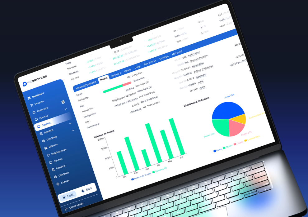 Launch and manage your propfirm with a CRM designed to maximize conversions and risk control. Adaptive challenge system, user management (admins, managers, agents), automated campaigns, and IB/MLM structure. Includes anti-HFT protection, IP control, copy trading, integrated support, and APIs ready to connect with your website or digital ecosystem.